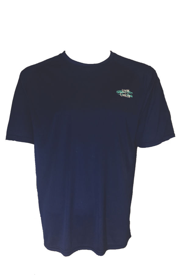 Kayak in Water Livin and Chillin Mens Moisture Wicking Shirt - Navy Blue